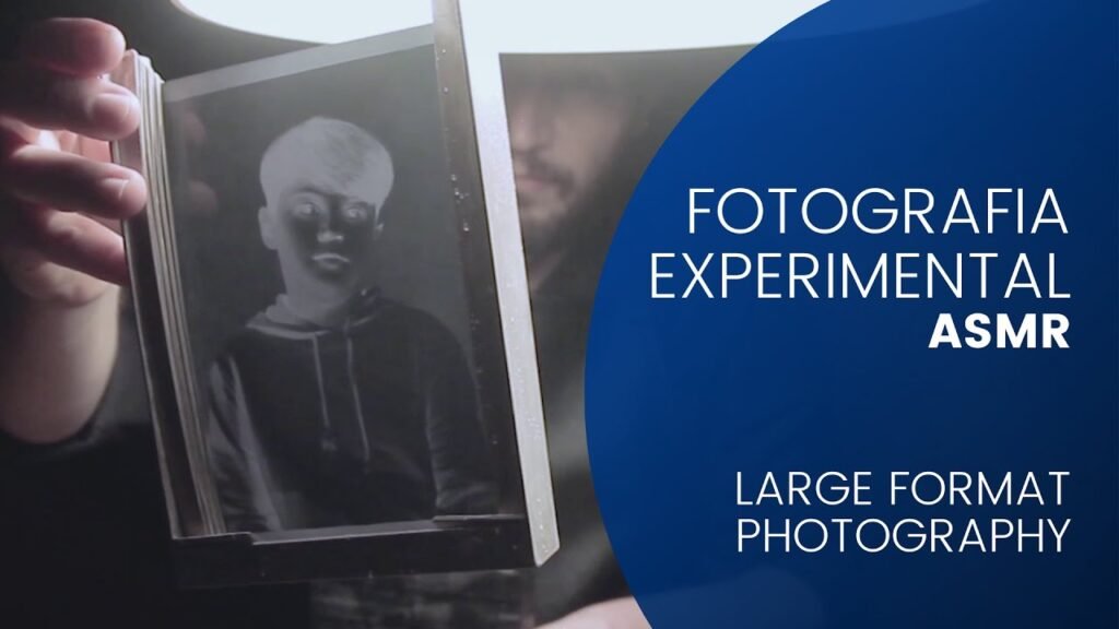 Com lente de lupa e filme de Raio-x faz diapositivos em estúdio, com flash, retratos.