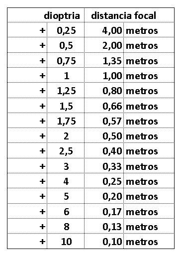 Já a partir da Dioptria, ou número de aumentos de uma Lupa, lente de aproximação, lente de óculos conseguimos determinar a Distância Focal através da fórmula