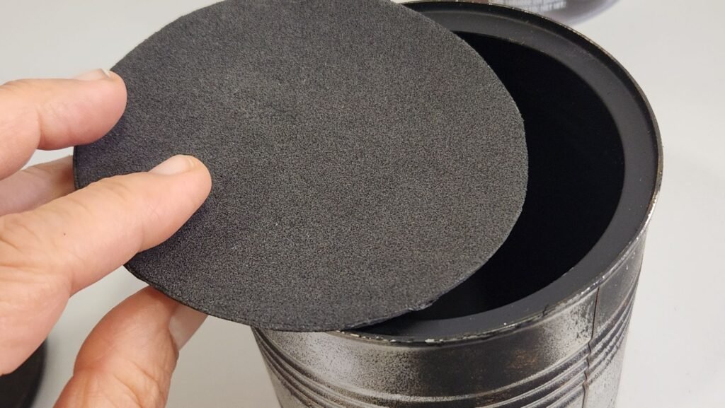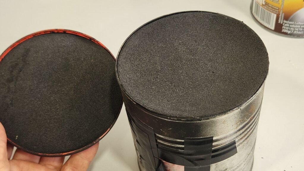 Quando as tampas são plásticas pintamos com spray preto fosco por dentro e por fora.